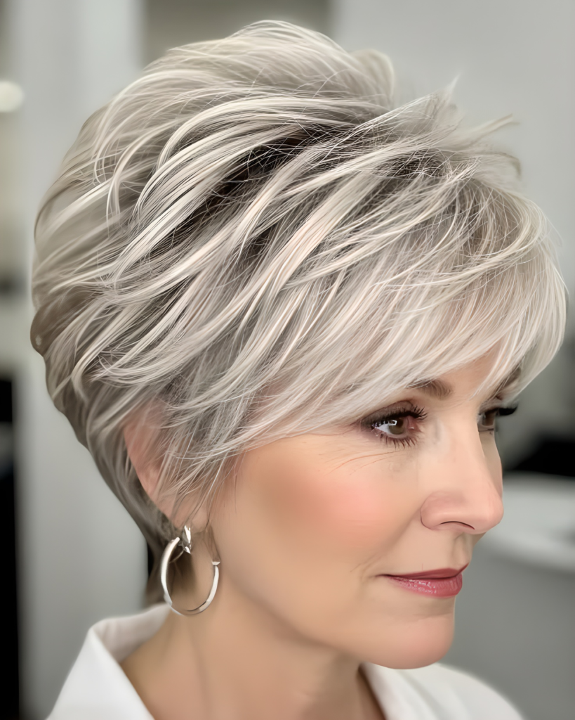 The pixie cut works by drawing attention to the eyes, cheekbones, and jawline, which are often the most youthful parts of the face. It’s also a low-maintenance option that can make you look effortlessly chic. To keep the look soft and feminine, ask your stylist for a slightly longer, textured version of the pixie, rather than a super-short, cropped style.